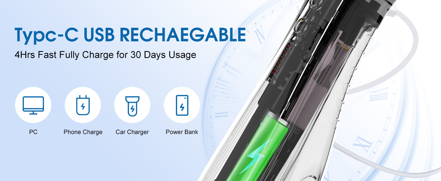Deeply Clean Teeth]Our water flosser upgraded unique pulsation technique, with 80-120PSI strong water pressure to effectively removes all the trapped places that traditional flossing can't reach.[45 Days Extended Battery Life]Our water flosser has a powerful, eco-friendly battery. Charge for 3 hours and get 45 days of use. The 2000mAh capacity battery can provide more powerful functions and noise reduction capabilities.